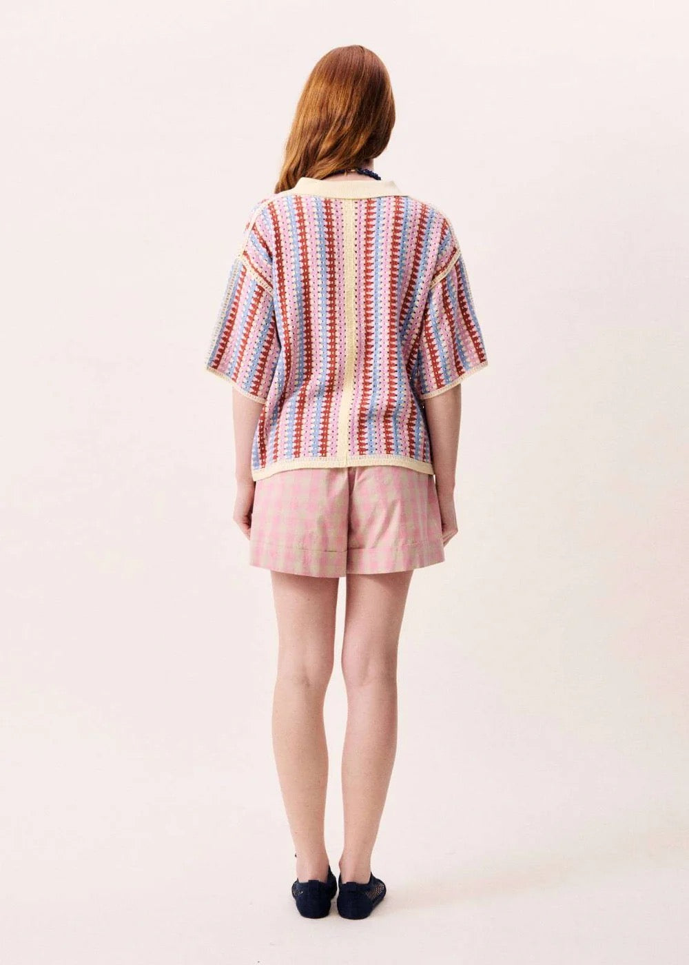 Elevate your everyday wardrobe with this sophisticated FRNCH short sleeve top knit. Crafted in a versatile multicolour palette, it features a refined silhouette accented by a contrasting crème collar and matching hem. Perfect for layering or wearing standalone, this piece offers both comfort and contemporary style.