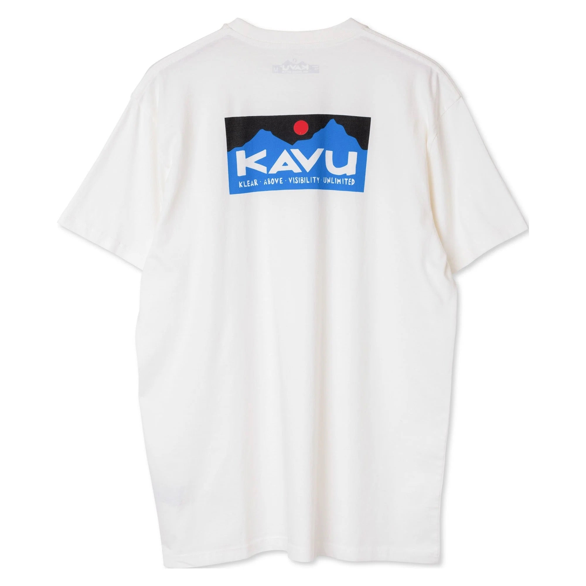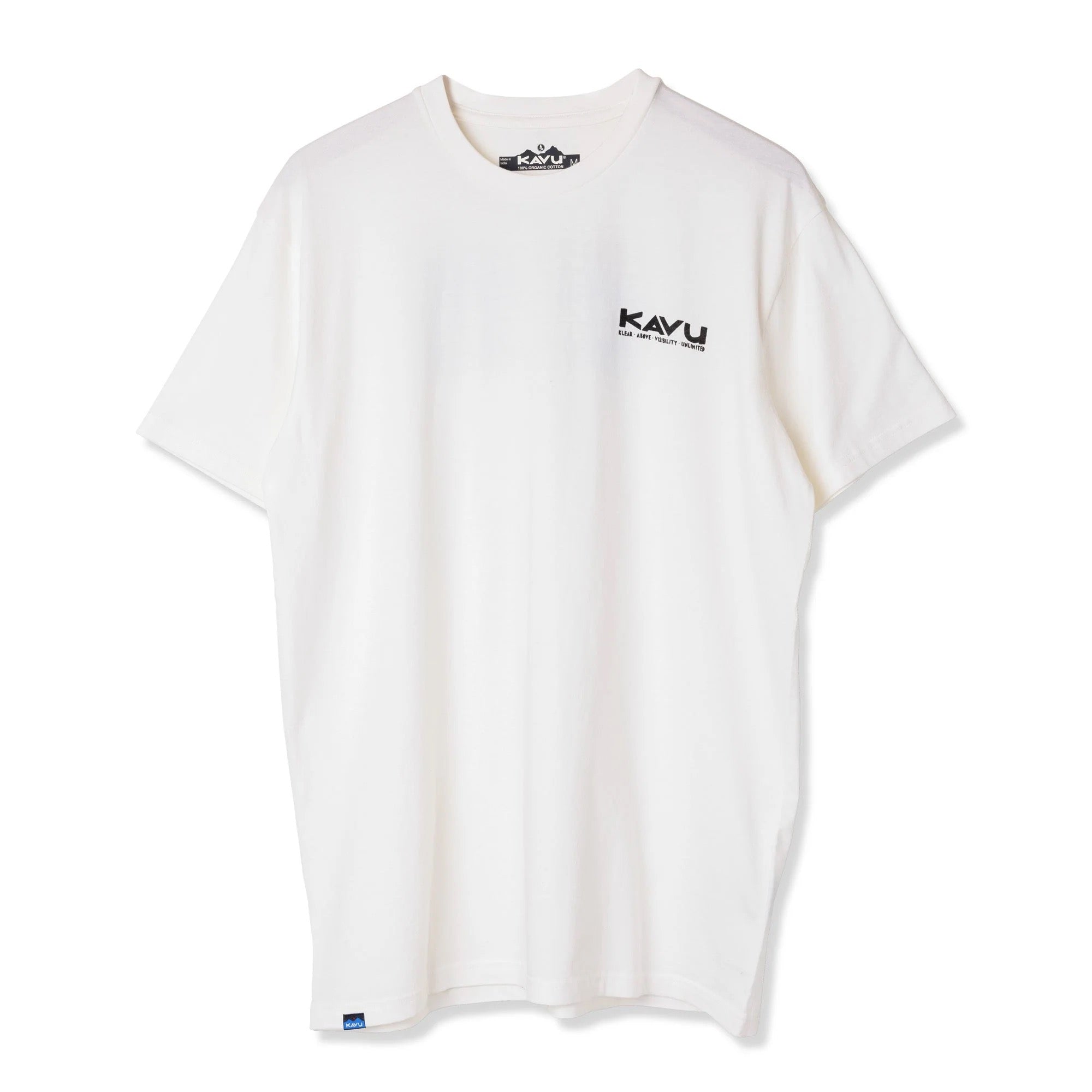 This is the Klear Above Etch Art T-Shirt—a super-comfortable everyday tee made from 100% organic cotton. On the front there’s a little logo, then on the back there’s a big full colour one—both nod to our name, and the story behind it. For those unaware, KAVU stands for Klear Above, Visibility Unlimited—an aviation term that basically means it’s going to be a great day for flying. It goes without saying every day is a KAVU day with this tee on.