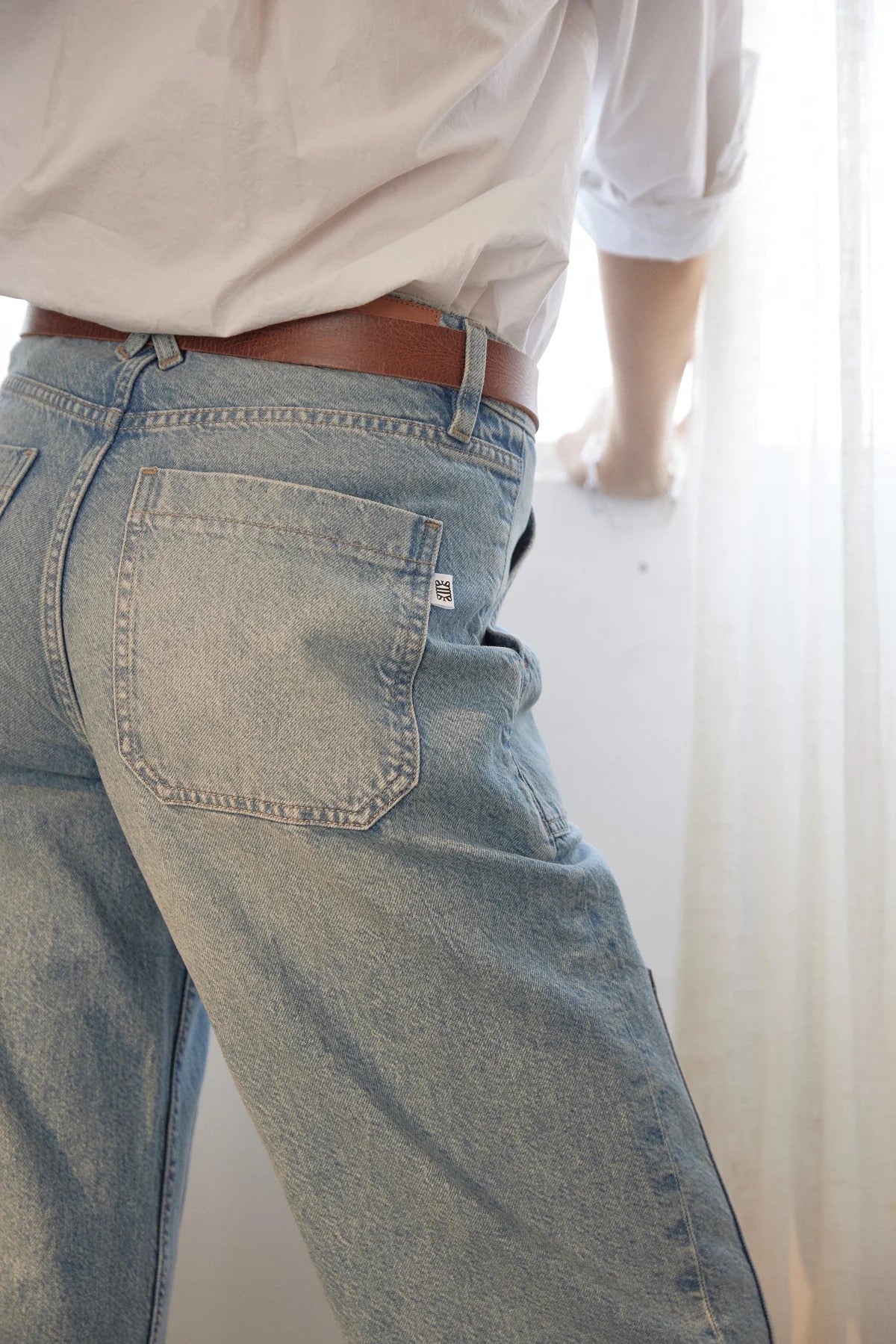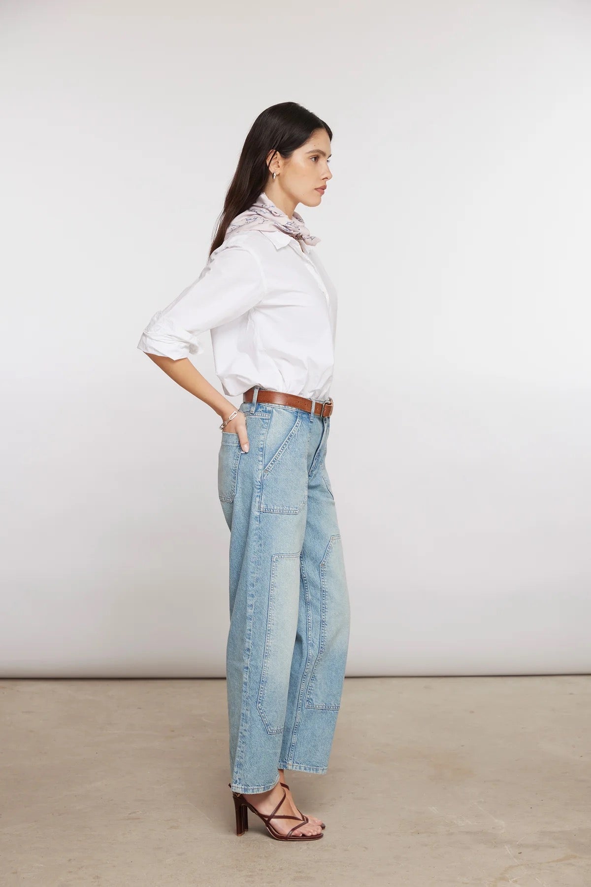 ;A full-length, relaxed straight leg silhouette with considered carpenter detailing and a refined vintage wash