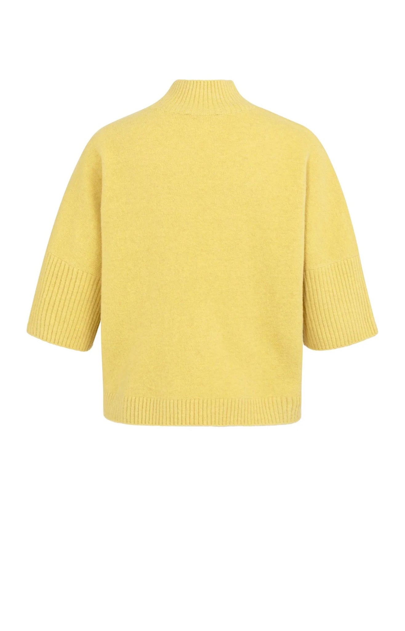 This comfortable sweater features a loose fit, a ribbed mock neck and three-quarter sleeves with wide ribbed cuffs. Made from a soft knit fabric that feels warm against the skin. The minimalistic design and clean finish make it a versatile piece. A stylish addition to your everyday wardrobe for a refined, casual look. The model is 175 cm and wears size S. 000437