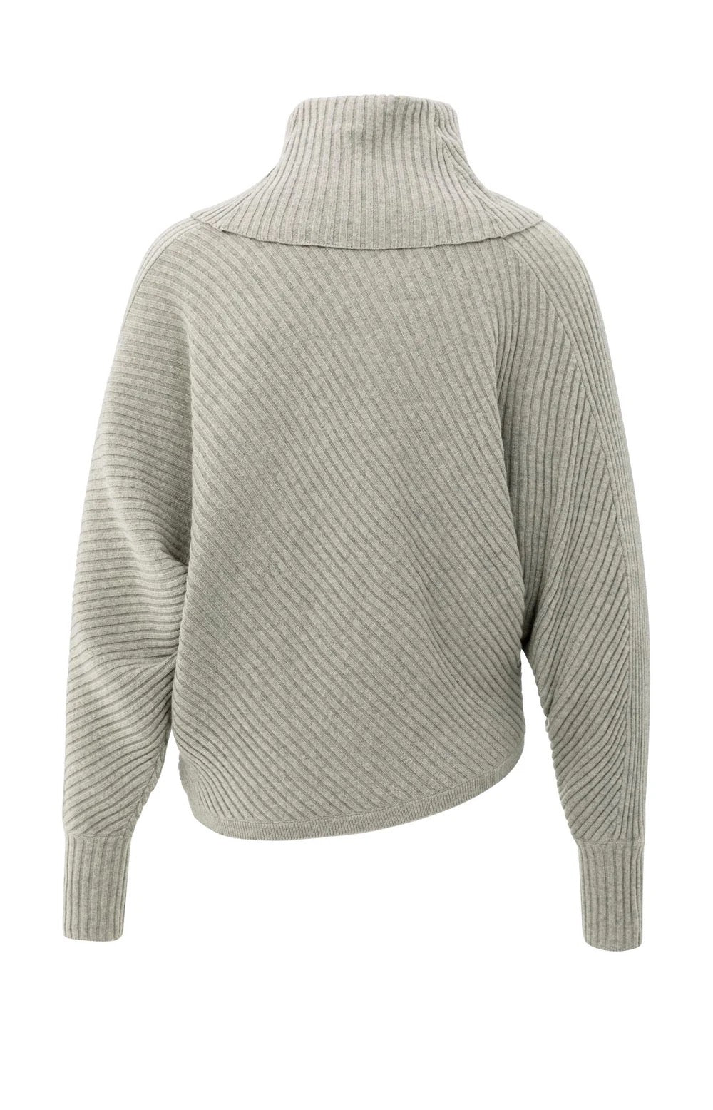 YAYA RIB BATWING WITH COLLAR BROWNISH GREY MELANGE