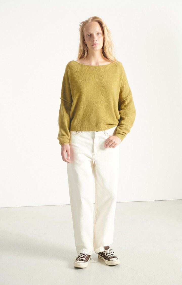 The Damsville jumper for women is a wardrobe essential, appreciated for its knit with a soft feel and enveloping comfort. Its loose fit and boat neck create a naturally casual shape. It embodies a style that is both sporty and timeless, and easy to wear season after season. Iconic and versatile, this jumper is a gentle, simple addition to everyday moments, and can be worn over a top or dress as required.