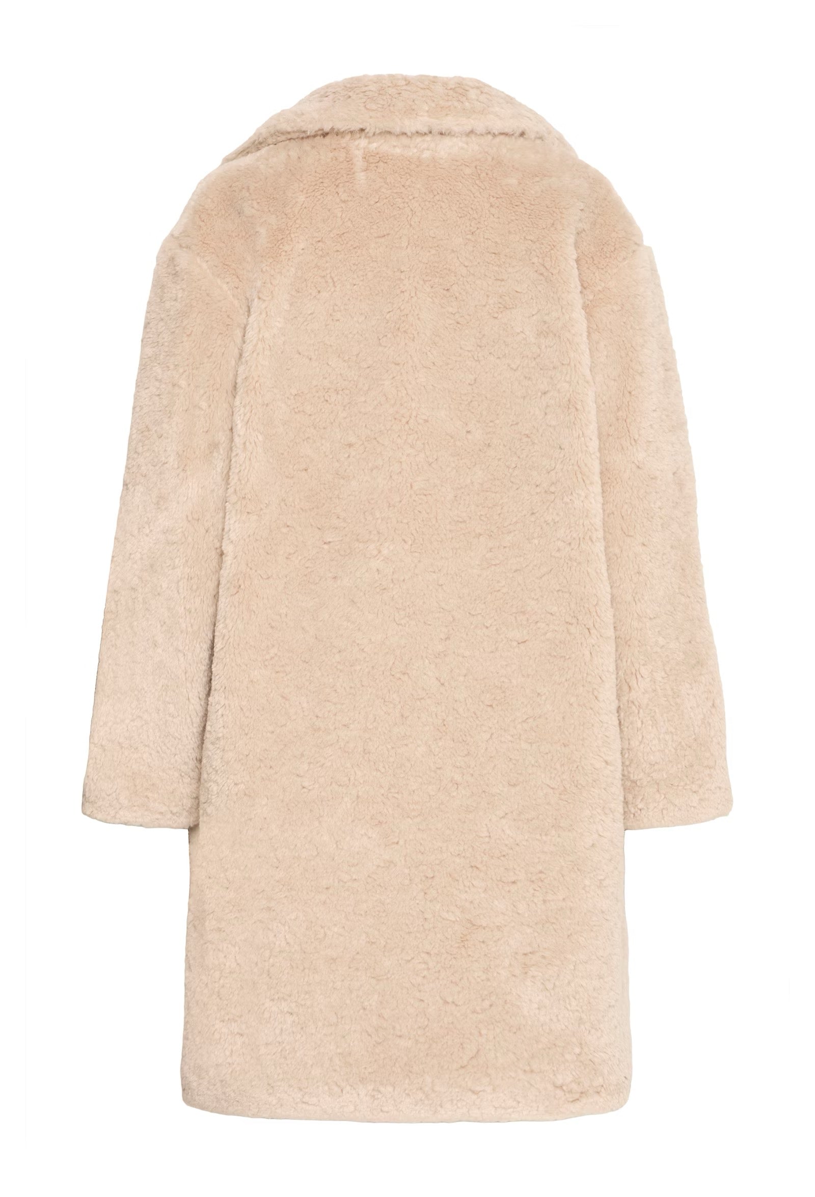 This faux fur coat features a straight silhouette with an oversized collar and long sleeves. The textured, cozy finish elevates its effortlessly cool look.