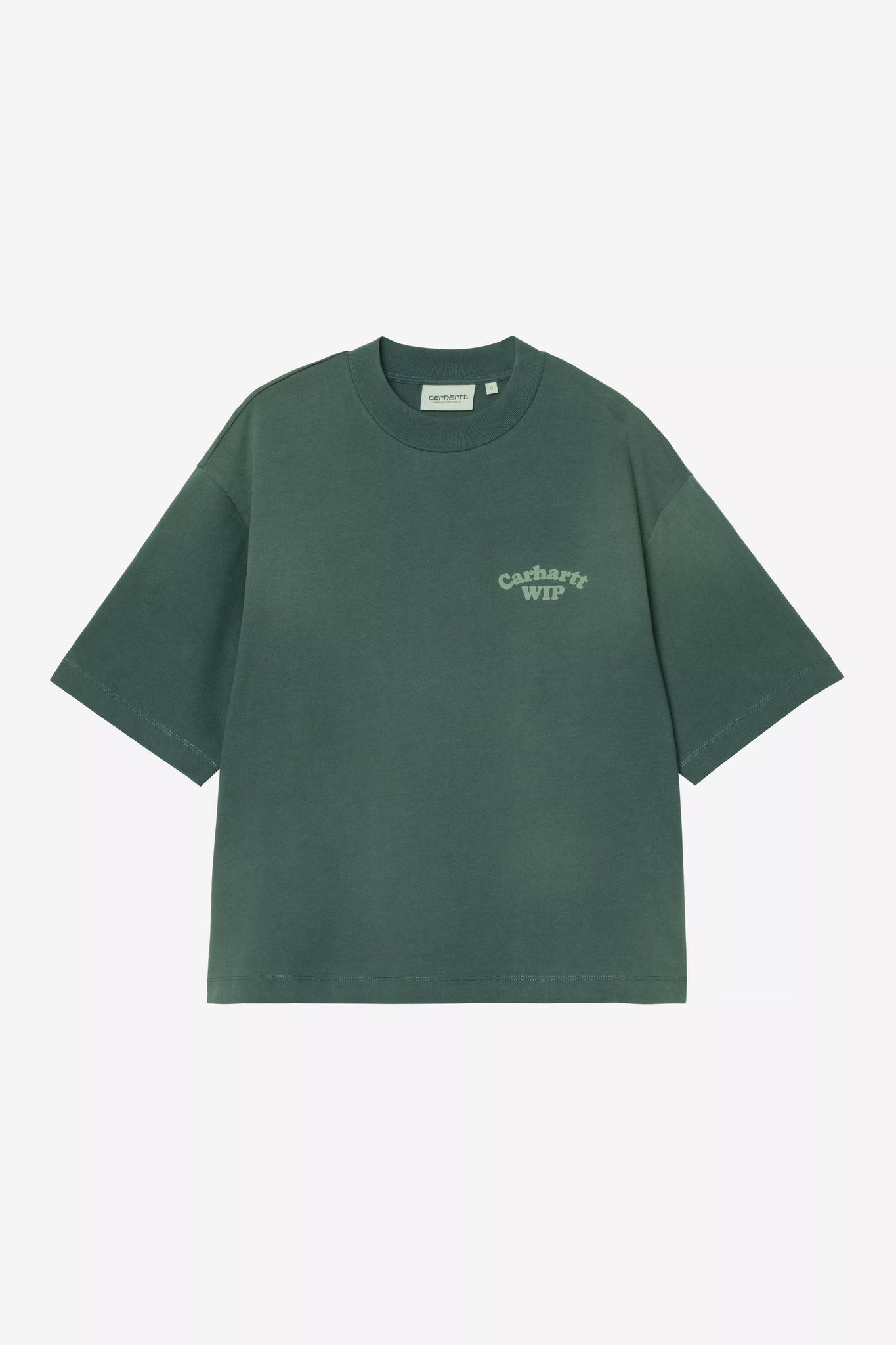 The Women’s S/S Modality T-Shirt is made in a boxy loose fit from organic cotton jersey, which has been stone-dyed for a unique color configuration. Graphic prints appear on the front and back.